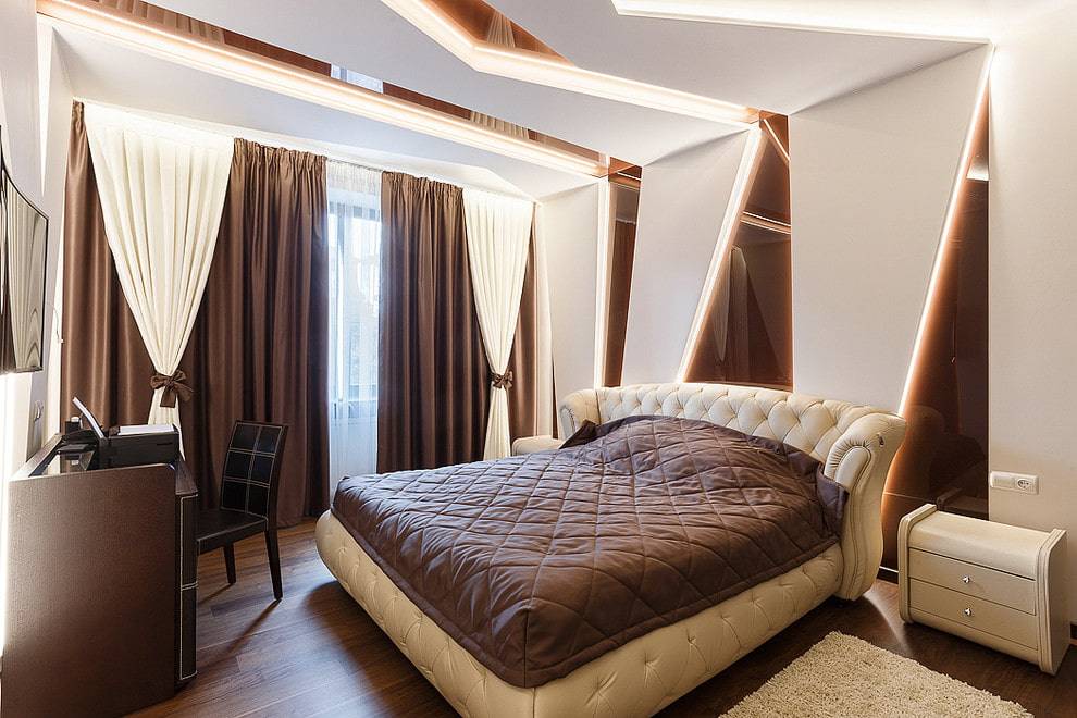 Какие зоны можно выделить в спальне с помощью разноуровневого потолка и как это сделать: