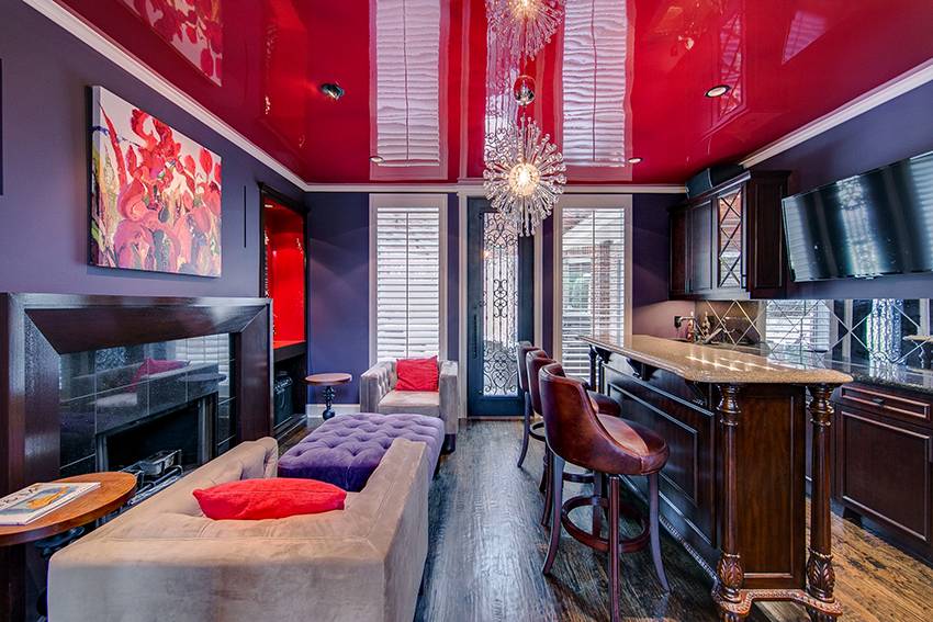 Цветной натяжной потолок в гостиной