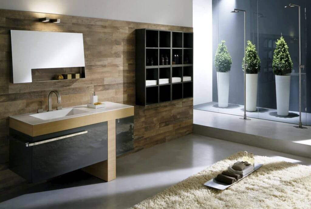МДФ. Единственный вид стружечных плит, который лучше всего переносит высокую влажность. Но, не все так просто. Температура в ванных обычно склонна к перепадам. Даже незначительный нагрев может спровоцировать испарение плитой вредных для людей веществ. От этого не защитит даже лицевая лакировка (ЛМДФ). Единственным выходом становится использование с дополнительными защитными покрытиями;
