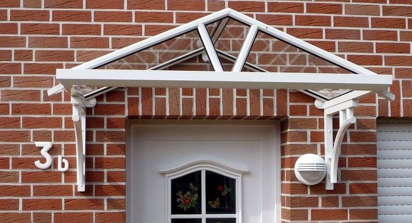 Наличие специального навеса положительно сказывается сразу в нескольких моментах. Первый из них – это защита входной двери от отрицательного воздействия осадков и ультрафиолетовых лучей солнца. Второй – защита человека от дождя, града или снега во время входа и выхода из здания. Третий – эстетическое предназначение, декоративное украшение для совершенного экстерьера.