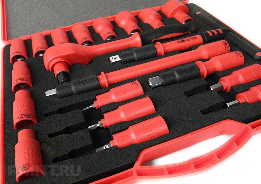 Оно должно обладать износостойкостью и с легкостью переносить воздействие керосина, бензина, масла, а также различных кислот. С этой целью при нанесении изоляционного слоя используются такие материалы как резина, пластмасс, эбонит. У инструментов, имеющих длинные наконечники, например отвертки, изоляция покрывает большую часть, оставляя открытыми только конец с рабочей частью.