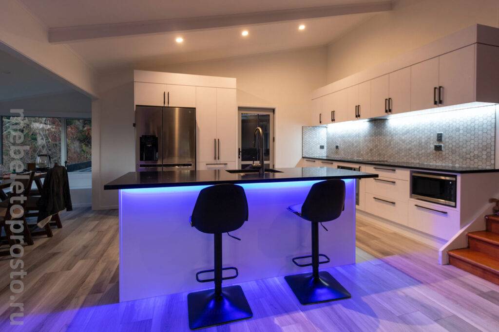 При необходимости источники света можно монтировать в предметы мебели в кухонной зоне.