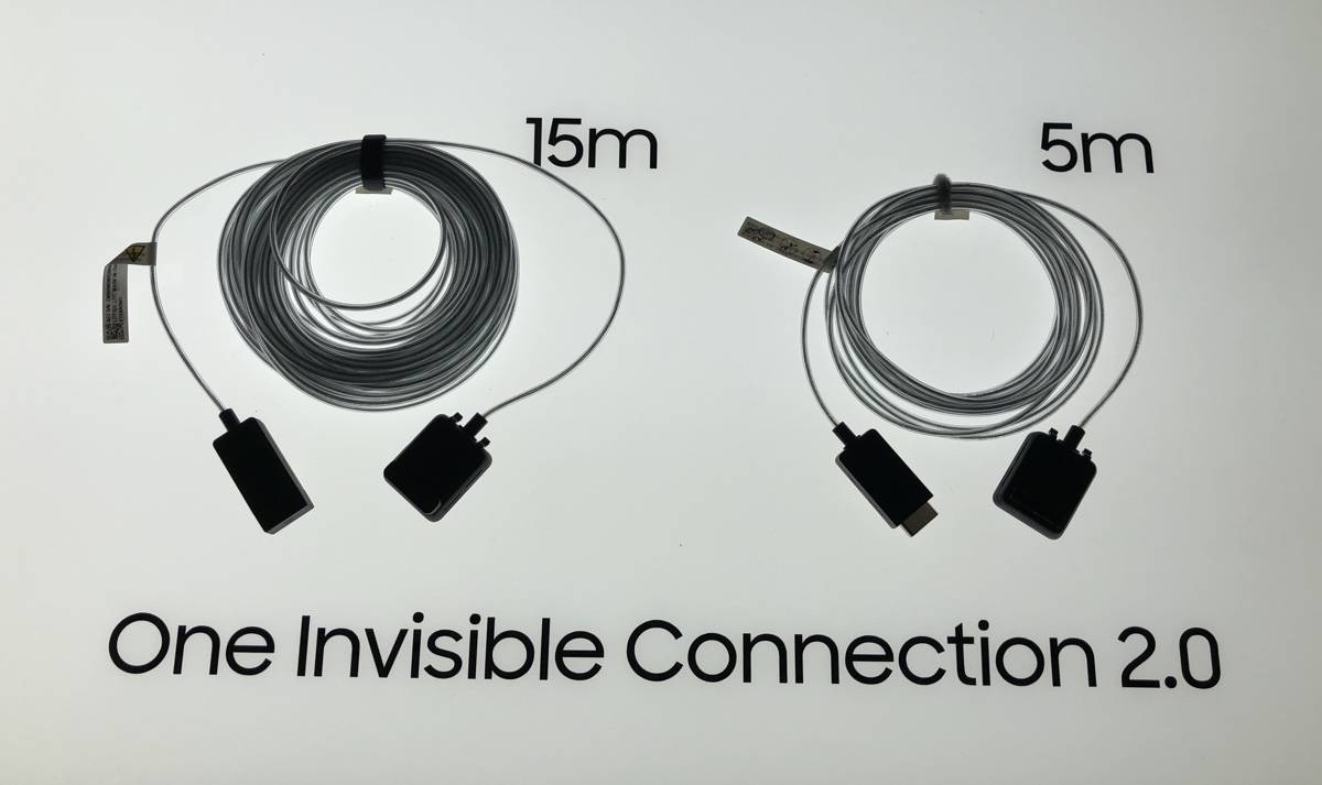 В этом году в Samsung представили новую версию кабеля, назвав его One Invisible Connection 2.0. Он работает с новыми моделями QLED — Q9F, Q8C, Q7F и в отличие от прошлогоднего варианта, обеспечивает передачу как видеосигнала, так и питания.