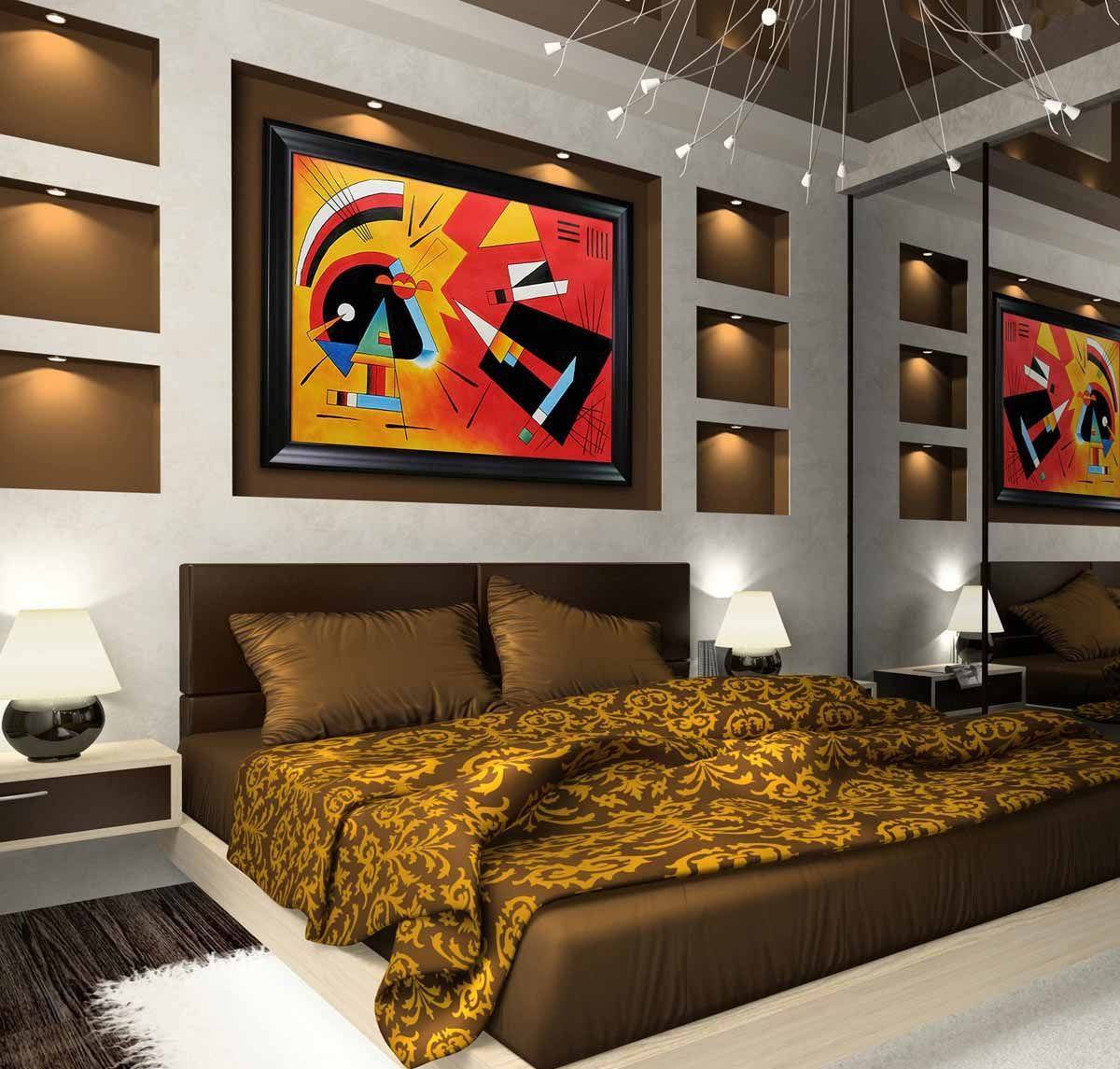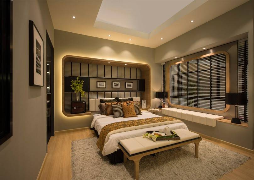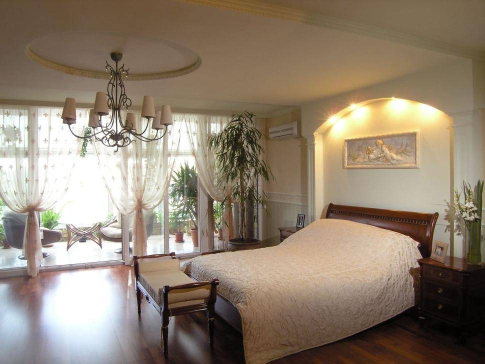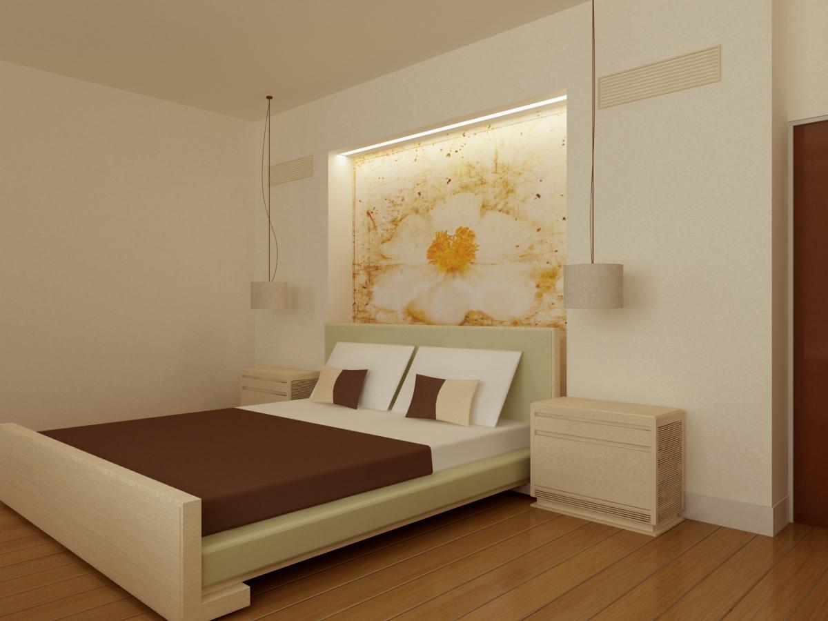 Распространенным вариантом является размещение проема в изголовье кровати. При этом углубление как — бы разделяет пространство. При этом внутри ниши размещаются полочки для книг, и монтируется специальное освещение.