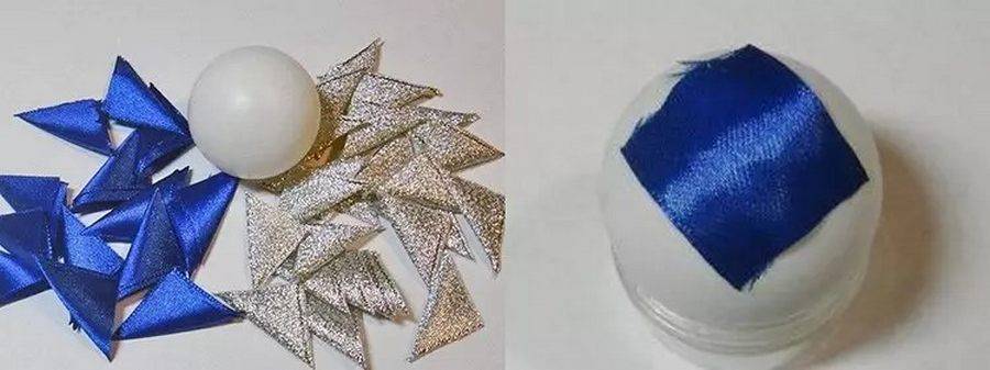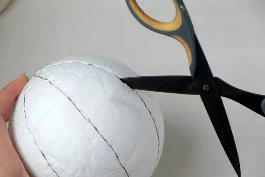 Пенопластовый шар можно купить любого размера, от самого маленького, до самого крупного. Чтобы удобно было работать с шариком, проколите его шпажкой.