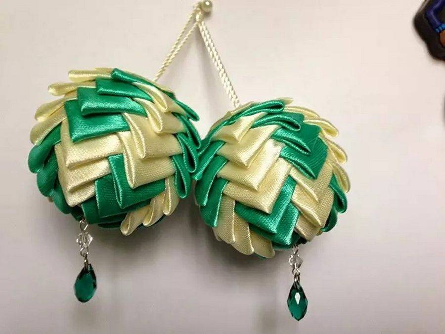 Внутрь вставляем булавочку, и делаем петельку. Очень простая конструкция, но смотрится красиво, и отлично играем на елочке переливаясь и радуя глаз красотой.