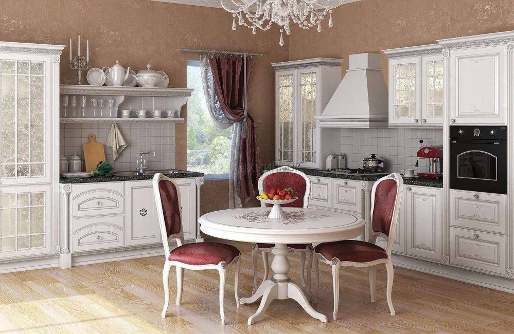 Очень часто используется натуральная древесина, в том числе и цвета беленый дуб. И хотя такие расцветки не очень хороши на кухне, потому что требуют постоянного ухода и контроля чистоты, смотрятся они просто великолепно. Но не стоит скидывать со счетов и обычные белые кухни, украшенные сталью или красивыми ручками для шкафчиков.