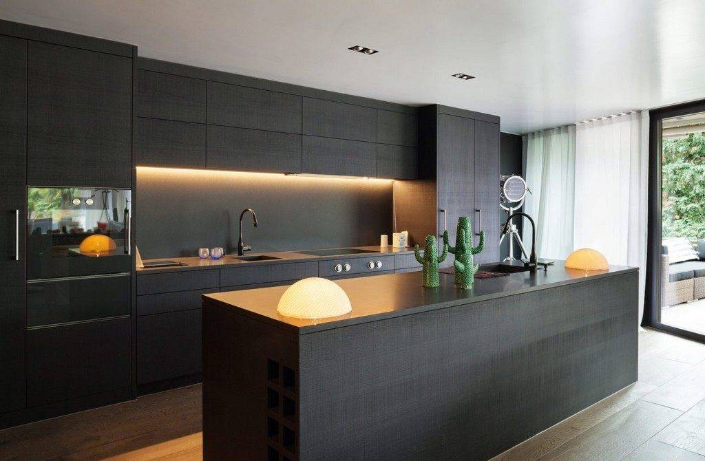 Как мы уже отмечали, в случае, если применяются классические темные-черные кухонные гарнитуры и мебель, чаще всего используют глянцевые и зеркальные поверхности, чтобы подчеркнуть все изящество общей конструкции.