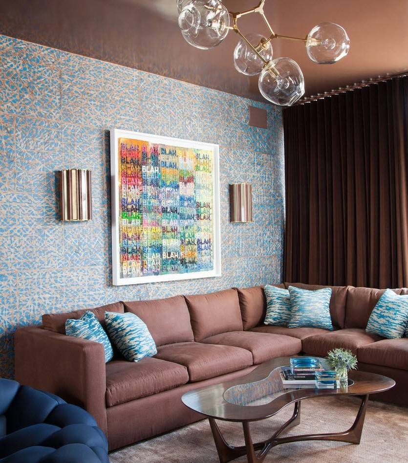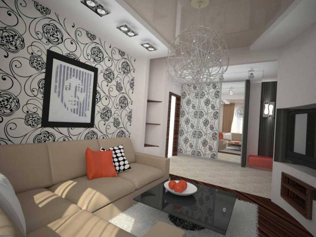 Гостиная. Является местом, где комфортно собираться семьей и принимать гостей, но здесь не обязательно царить только пастельным и строгим образам. Добавьте стенам фактуры и цвета за счет обоев с крупным рельефом;