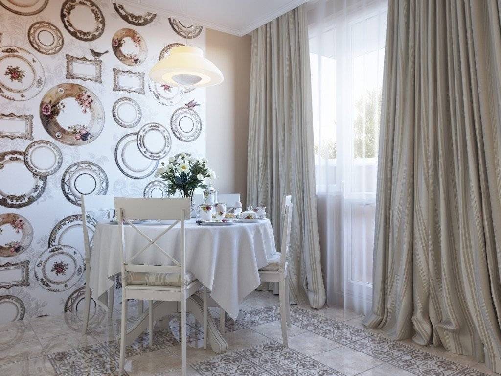 Простоту прованса подчеркнут обои с мелкой фактурой. Теплые оттенки дополнят окружающий образ.