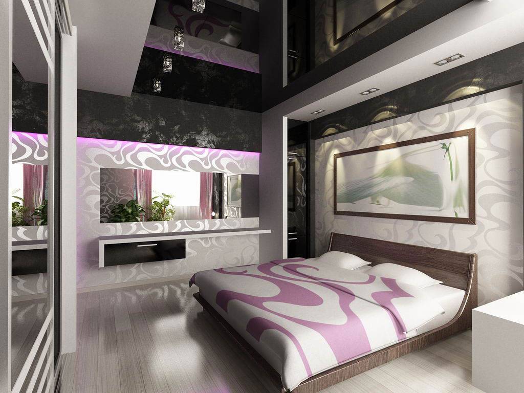 Спальня. Здесь возможно выбирать любые понравившиеся фактуры и цвета, но предпочтительнее использование спокойных оттенков;