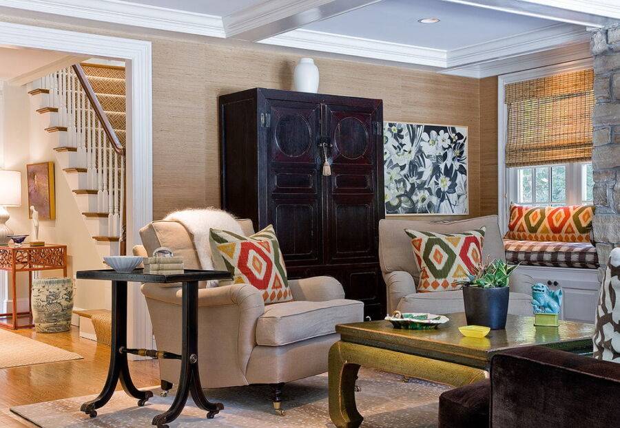 - В гостиную. Главный принцип выбора – эстетический, поэтому экономить на отделке не стоит. Она может быть любой, главное, чтобы интерьер получился гармоничным и стильным.