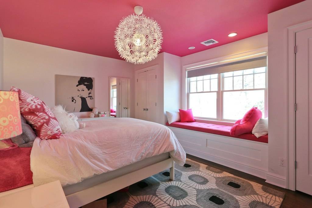 Оформляя потолок в розовой спальне, можно претворить в жизнь различные дизайнерские решения, сделать интерьер неповторимым.
