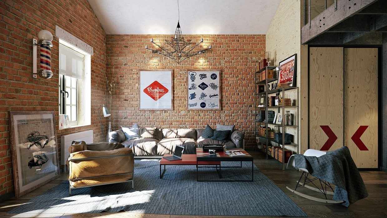 - Лофт приветствует имитацию натуральных материалов. Текстурные каменная кладка или благородный деревянный сруб коричневого цвета, изображенные на обоях, освежат и дополнят интерьер в лофтовом направлении.