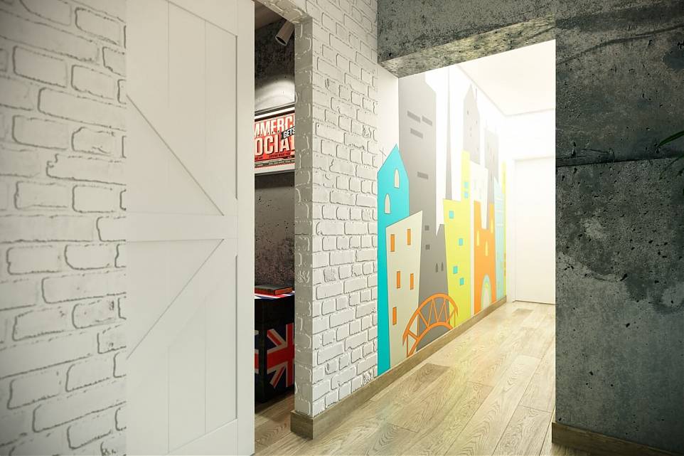 Граффити – популярный вариант декорирования прихожей в стиле лофта