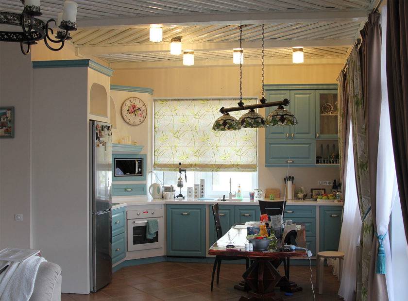 Именно поэтому в маленькой кухне прованс – это отличный шанс визуально увеличить ее площадь.