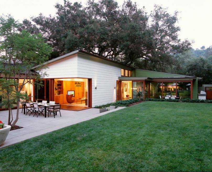 Чем выше угол такой крыши, тем меньше нужно времени для отвода воды в желоба. На ней не будут скапливаться ни листья, ни различный мусор, а значит, кровельный материал сможет прослужить намного дольше. К тому же, такая крыша внешне будет выглядеть намного эстетичнее, что для многих хозяев будет значить очень много.