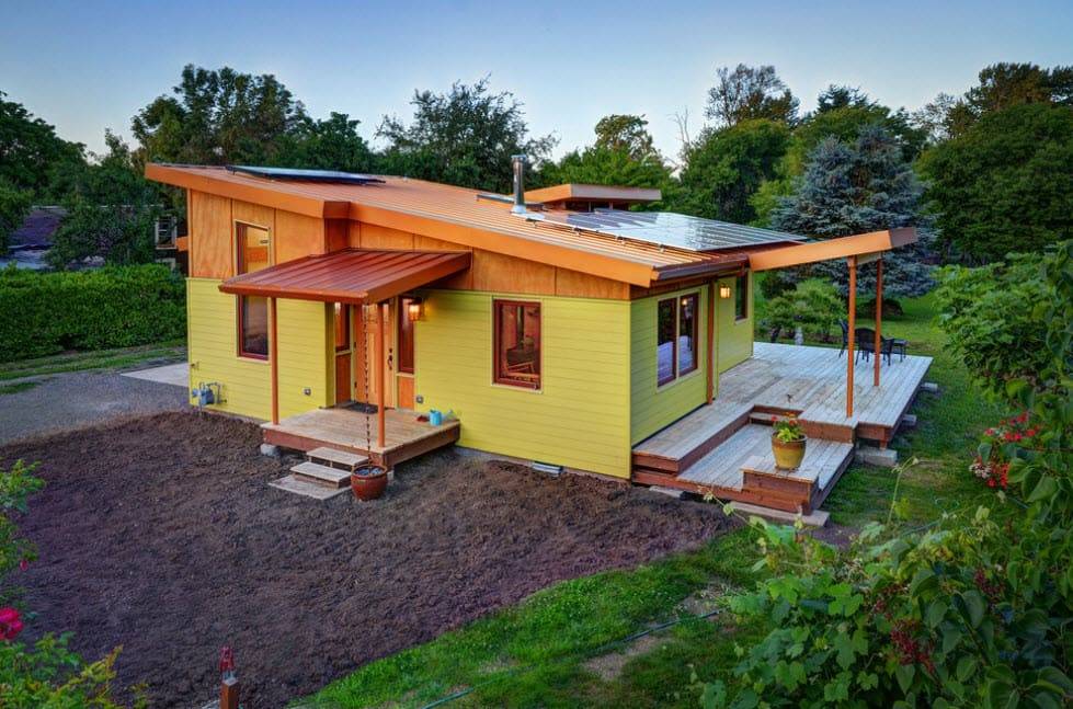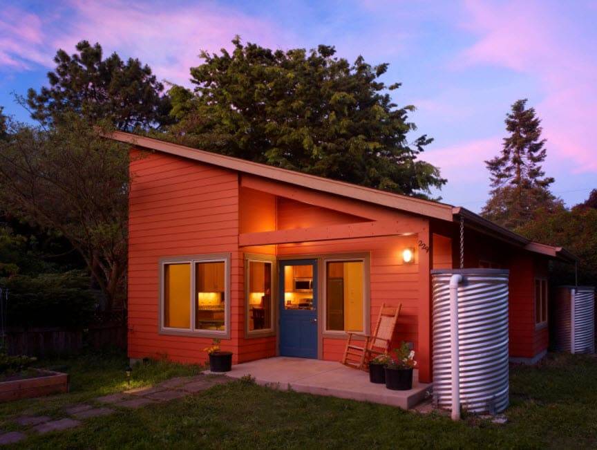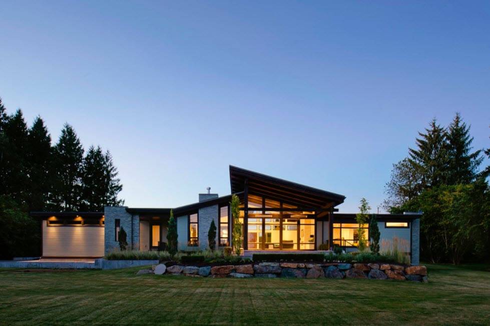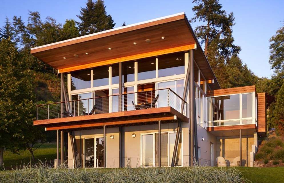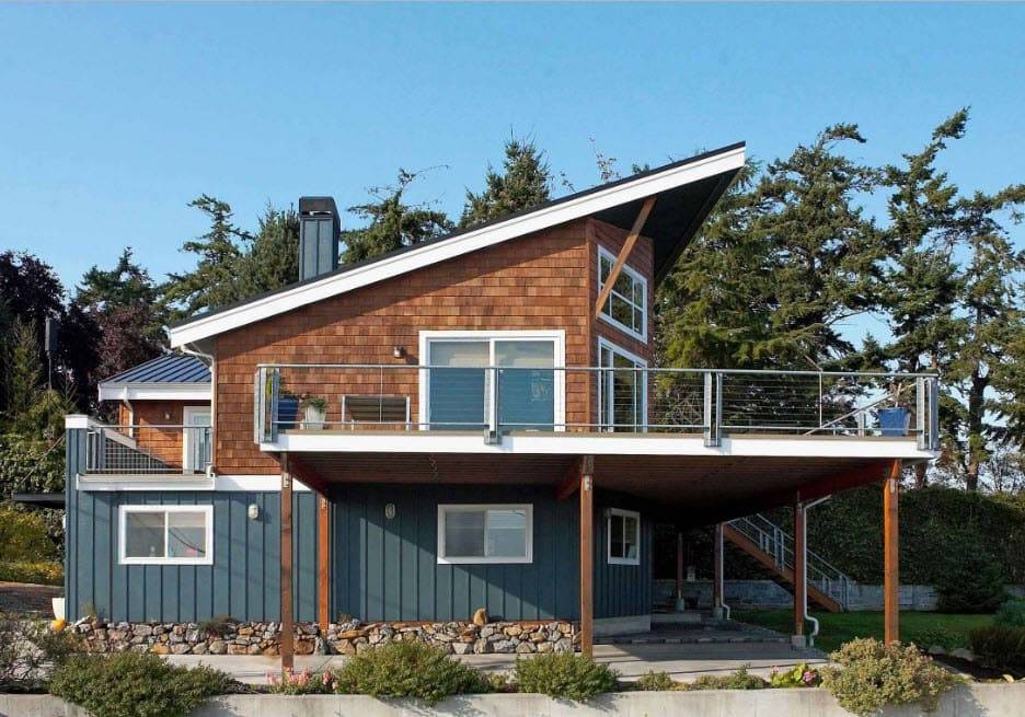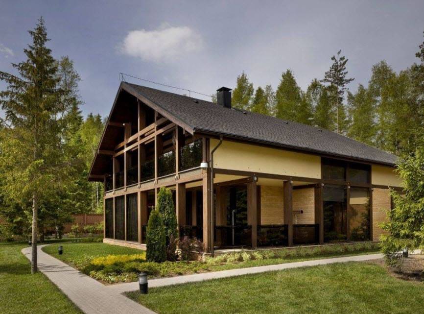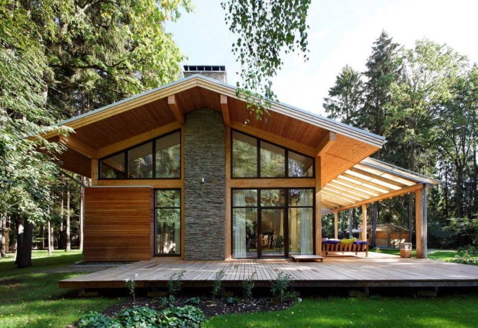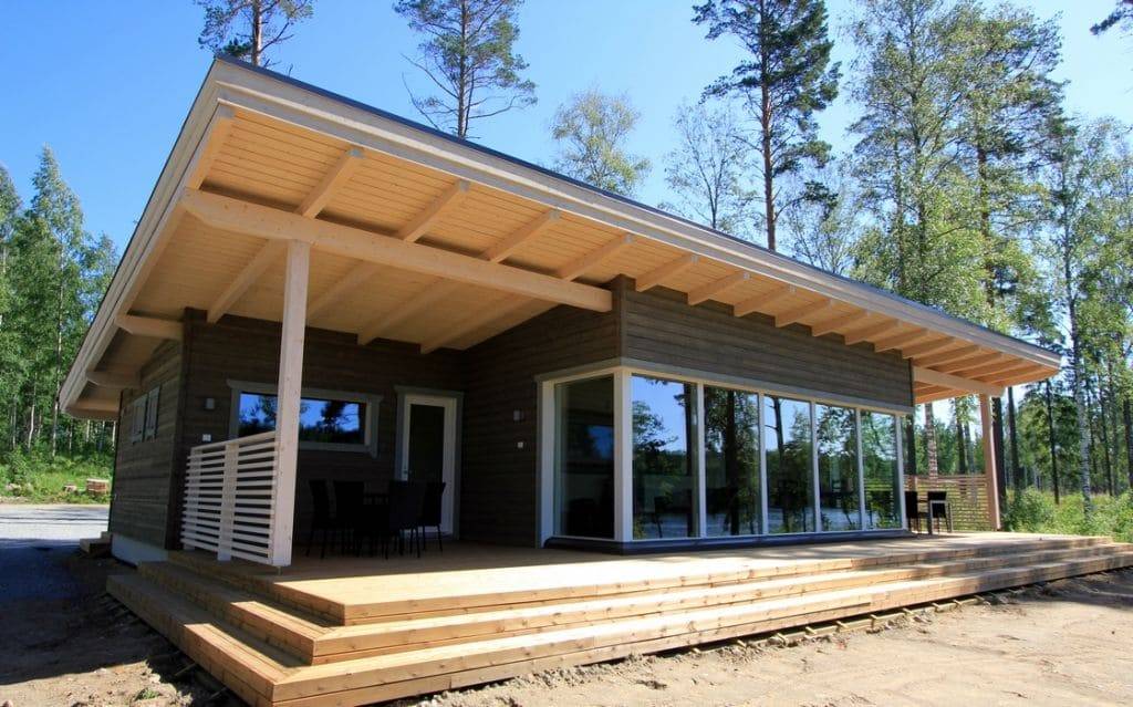 Если вас привлекает стиль минимализм, и вы хотите построить небольшой бюджетный дом, то деревянный коттедж с односкатной кровлей и мансардой будет самым экономичным решением.