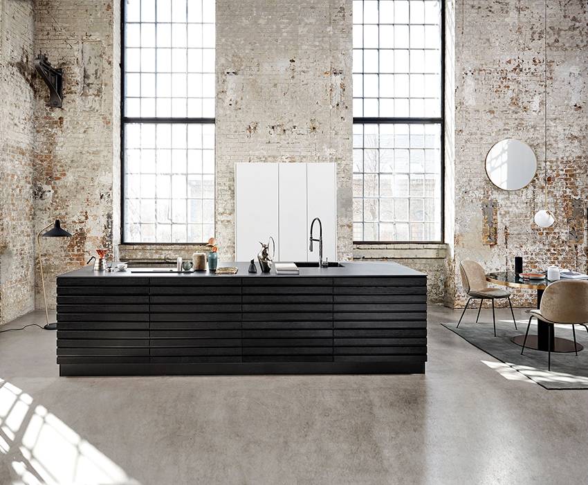 Если помещение отличается небольшими размерами, не следует располагать шкафчики кухни и остальные рабочие элементы вдоль одной стены. В условиях маленькой площади лучше выполнить угловую кухню лофт или оформить П-образную рабочую зону, вследствие чего во время работы на кухне все нужные предметы будет удобно доставать. Для маленького пространства хорошим решением станет модульная кухня лофт, которая имеет множество встроенных поверхностей, функциональных шкафчиков и полочек.