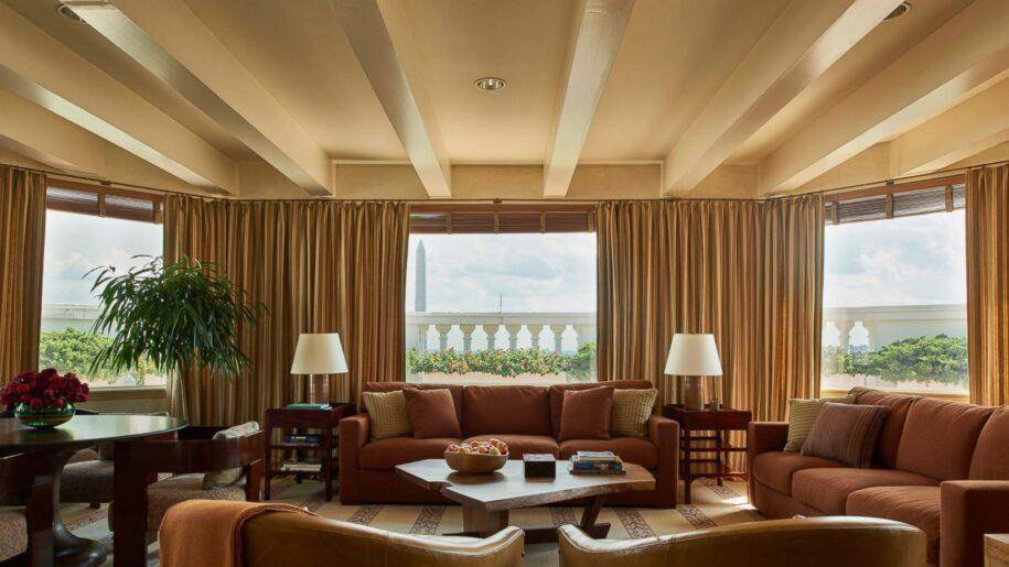 Важно не перегрузить пространство мебелью, отдавая предпочтение утонченным предметам на резных ножках, фасады которых выполнены в светлых оттенках (слоновая кость, бежевый). В качестве декора здесь можно использовать многоуровневые потолки, арки и лепнину, легкий текстиль и картины в золотой оправе