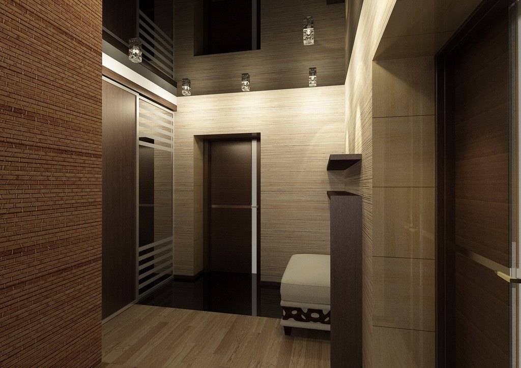 Правильно расположенные светильники по центру длинных стен тоже создадут световое затемнение у торцов. Фото дизайна прихожей для узкого коридора помогут правильно сориентироваться с оформлением и подобрать нужный вариант.