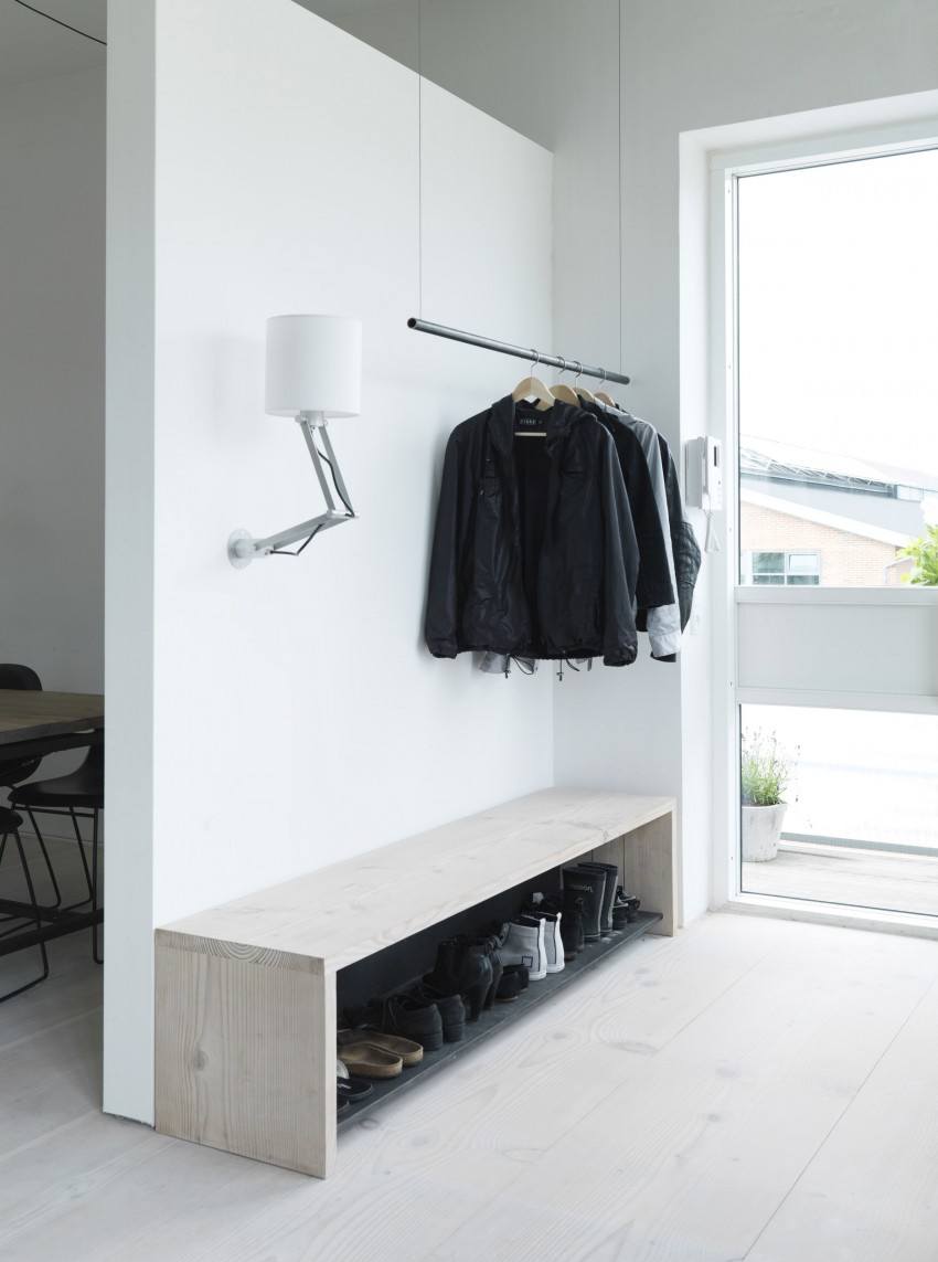Сначала необходимо найти место для размещения вешалки. Хорошенько присмотритесь к помещению, найдите возможность поставит шкаф или просто вешалку, а под ней — обувницу с сиденьем.
