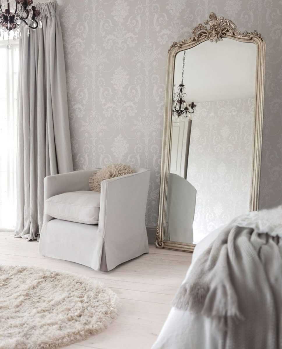 Подобная стилистика подходит для любителей роскоши. Спальню обычно размещают на втором этаже и наполняют ее пространство мебелью с утонченными узорами, различными предметами декора и картинами. Набор мебели, как правило, состоит из пуфа, прикроватных тумб и огромного ложа.