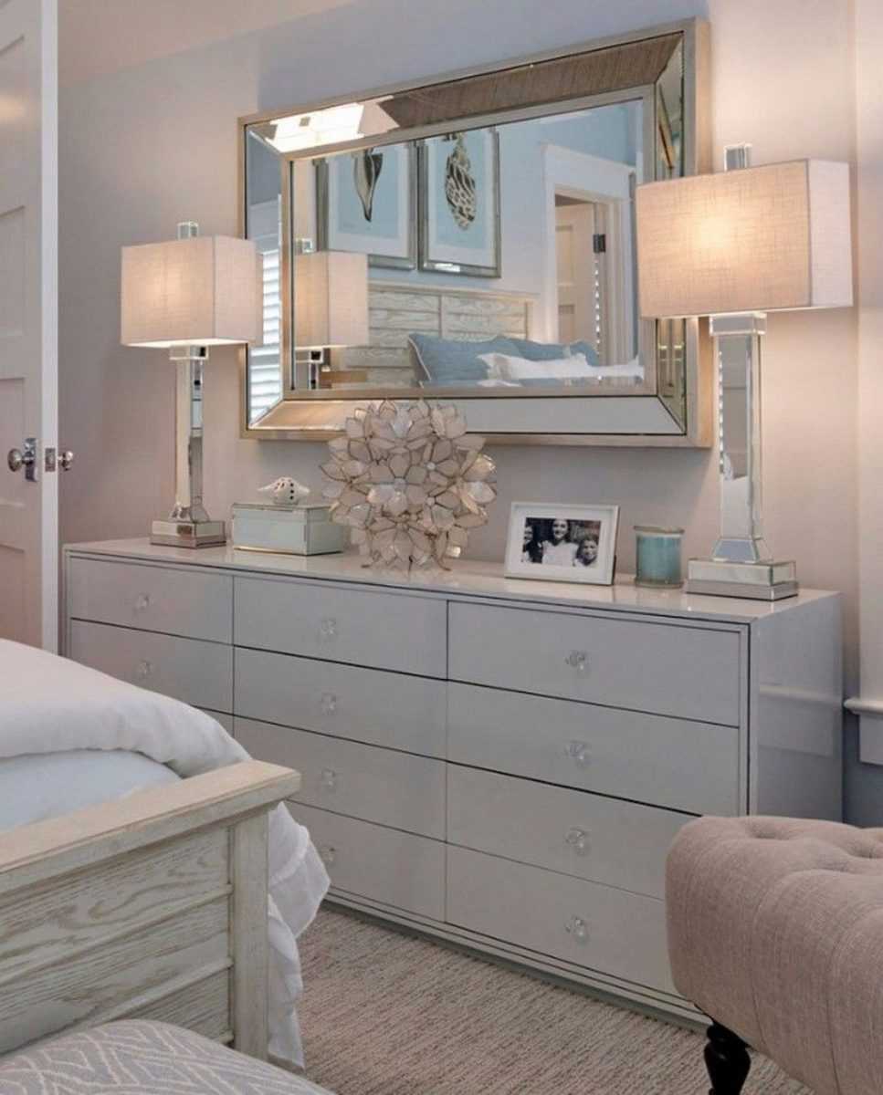 - В спальне обязательно должна быть мебель для хранения вещей. Для таких задач используются шкафы или комоды. В спальню с большой площадью поставить вместительный шкаф-купе. Для небольших помещений можно использовать встроенные шкафы.