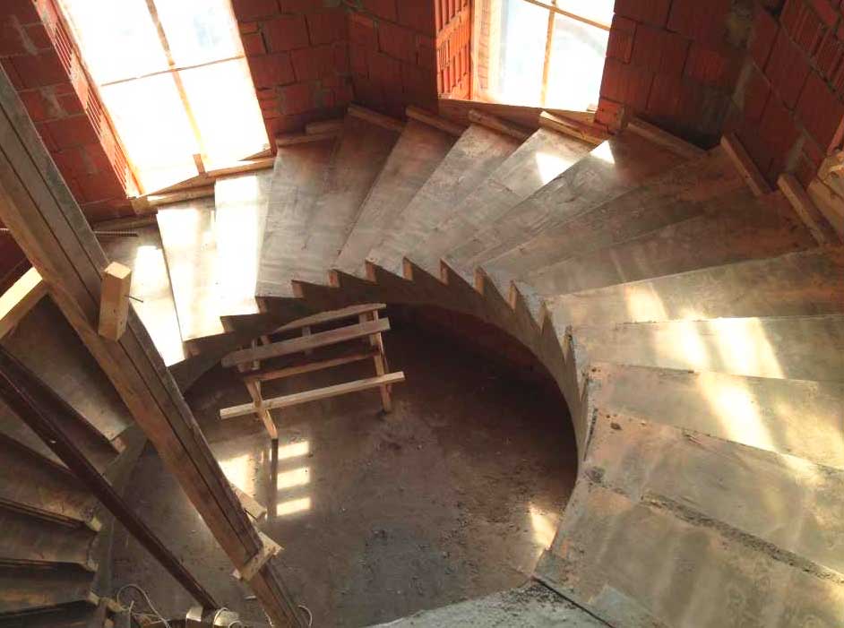 Процесс возведение лестницы из бетона