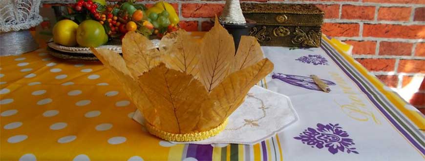 Из ярких осенних листьев можно сплести красивый венок для украшения окон, дверей, стен и пр. Венок, прикрепленный к входной двери, будет радовать не только вас, но и ваших гостей.