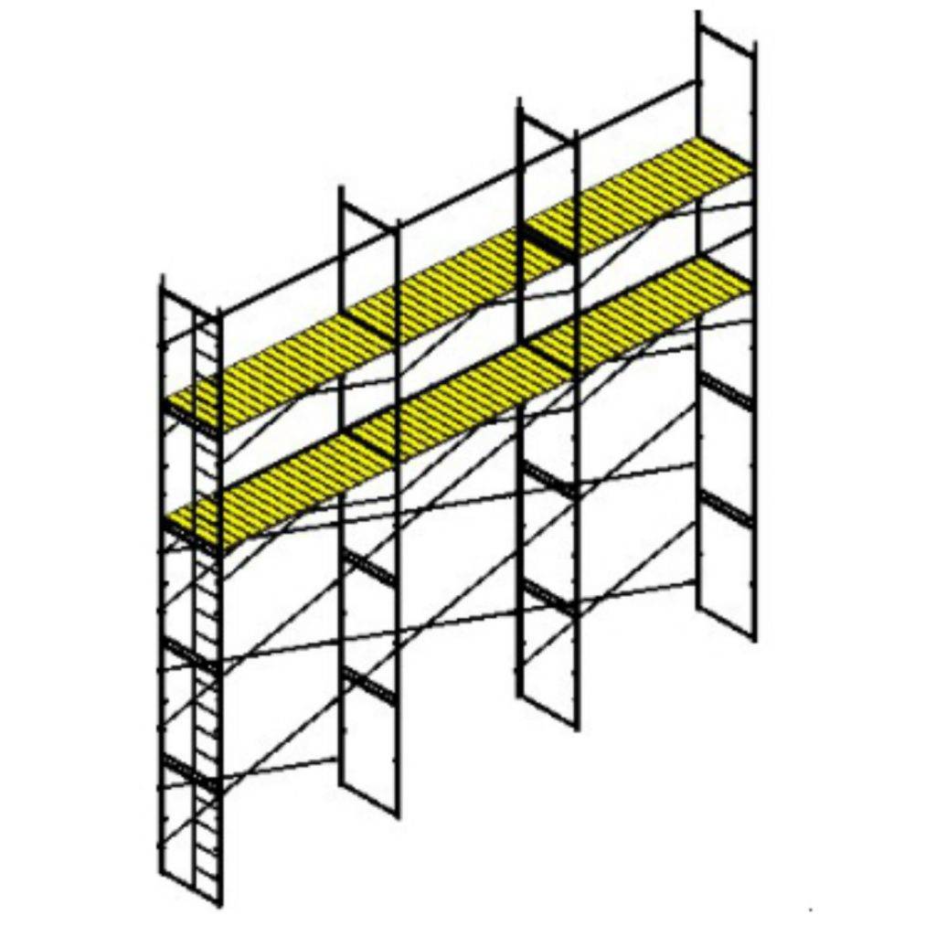 Рамные металлические леса способны выдержать давление 180-200 кг на кв.м. Они изготавливаются из стоек и рам. Такие леса разрешено возводить на большую высоту – до 45 метров. Перед монтажом металлической рамы в первую очередь определяются с расположением ярусов, лестниц и других элементов конструкции.