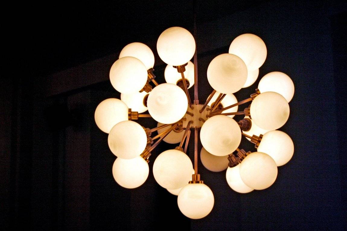 Плафоны у люстры в идеале должны скрывать лампы, а если они расположены слишком близко к потолку, то это будет обязательным условием.