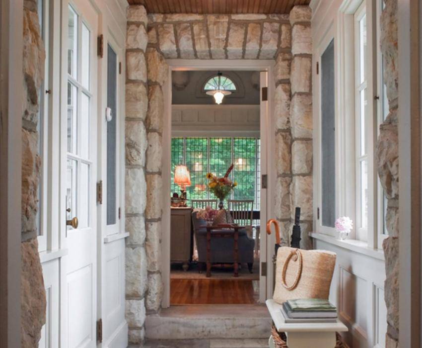 С помощью каменной облицовки можно оформить переходы в помещениях или углы прихожей. Такое решение не отяжелит пространство, а лишь подарит «изюминку» в оформлении интерьера.