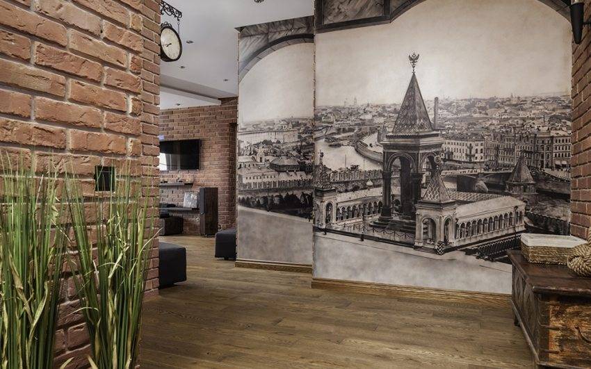 Стильное решение для современной прихожей — фотообои в сочетании с декоративным камнем