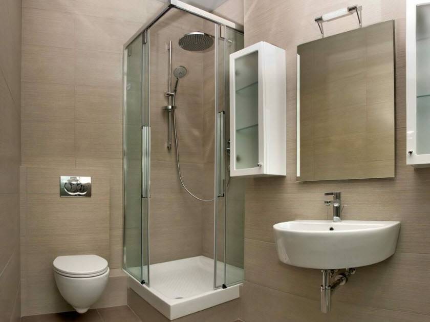Если помещение максимально маленькое, то сделать его привлекательным поможет керамическая плитка одного цвета, но разных оттенков. Материалом более темного оттенка проводится отделка пола и больших стен, светлая плитка используется для облицовки меньших стен. Благодаря этому можно изменить геометрию помещения, сделав его более уютным и просторным. Также помогут в этом горизонтальные линии, выложенные темной плиткой. Поднять потолки помогут вертикальные линии и более светлые тона, в сравнении с плиткой, используемой для отделки стен и пола.
