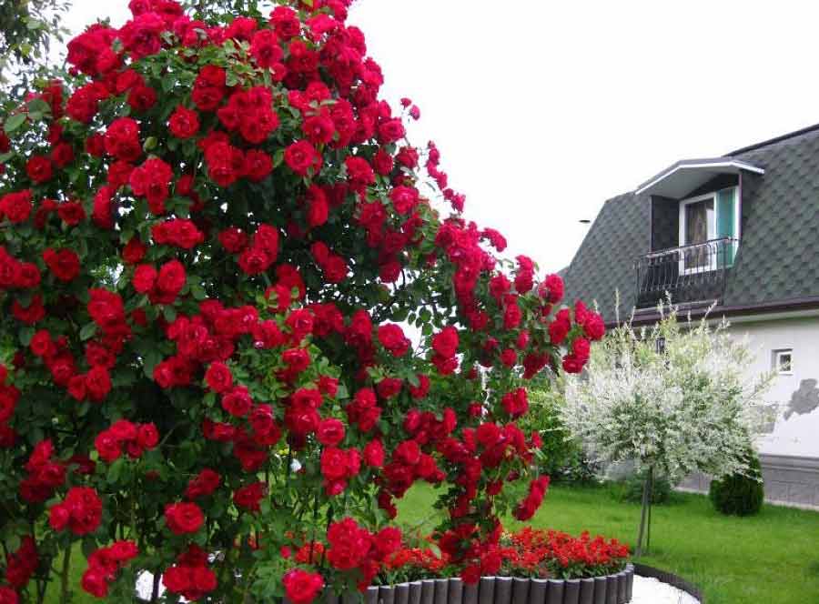 - Опирающиеся лианы – прислоняются к опоре, и ничем не фиксируются на ней. Их необходимо направлять на свое усмотрение. К такой группе относят ежевику, плетистые розы, бересклет. Для плетистой розы опорой может быть любое дерево, не плодоносящее. Из опирающихся лиан, как правило, делают живые изгороди.