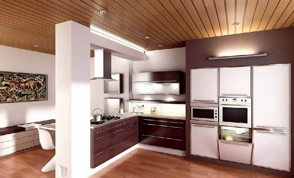 Пластиковые панели для кухни на потолок с имитацией натуральной древесины