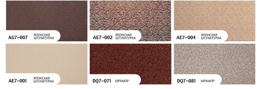 Японская штукатурка: AG7-007,AE7-002, AE7-004, AE7-001. Мрамор: DQ7-071,DQ7-081