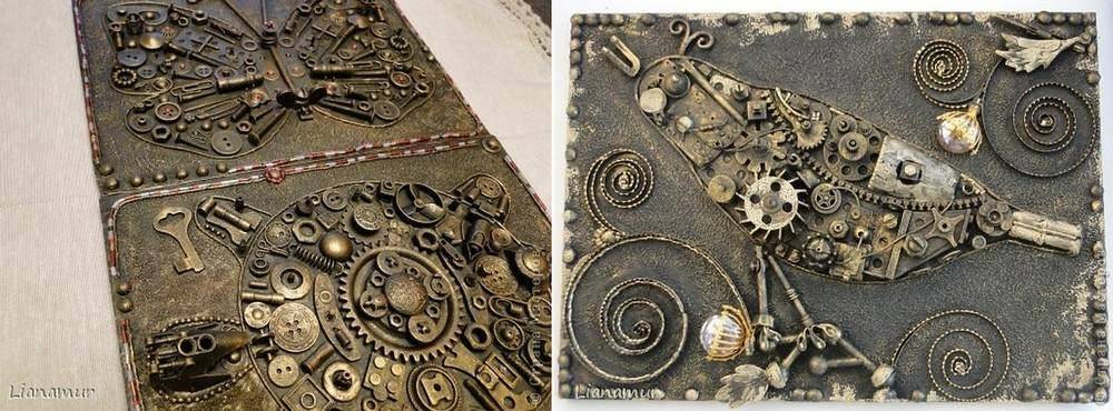 Это особая техника, суть которой, скомпоновать в виде поделки бросовую ненужную мелочь. Иногда стимпанк по ошибке принимают за кованое панно, но это совершенно разные вещи.