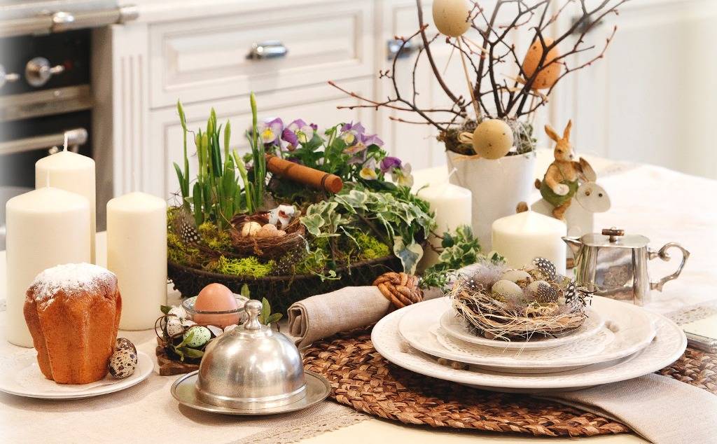 Декорируют обеденный стол, согласно традициям. Главной тема декора остается яйцо, куриное или перепелиное, можно гусиное – оно намного крупнее. Фантазий на тему создания декора существует превеликое множество, равно, как и украшение интерьера комнат.