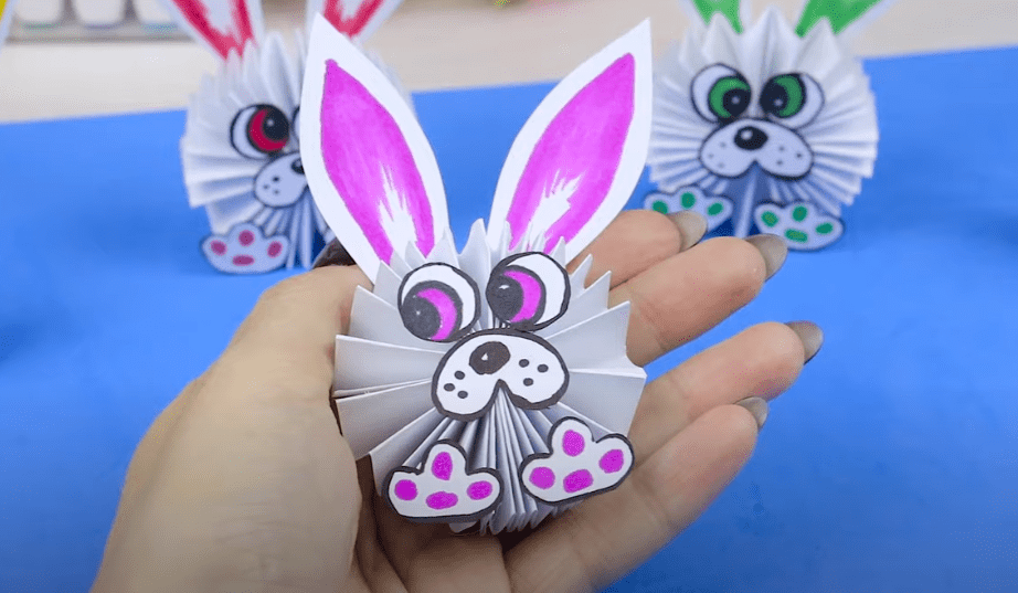 Самого простого кролика можно сделать из обычной бумаги. Такой мастер-класс особенно подходит для детей, ведь сделать таких зайчат, которые обязательно поднимут настроение, очень легко.