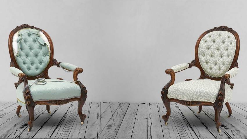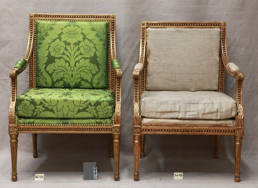 Этот вариант подойдет только в том случае, если обивочная ткань сохранилась достаточно хорошо, а аналог недоступный по ценовой политике.