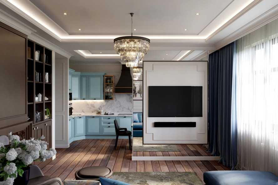 Элегантный шкаф-перегородка в классическом интерьере небольшой квартиры-студии