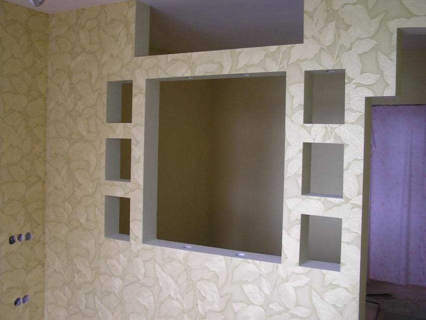 Достоинства: прочность, устойчивость, гибкость (можно сделать полукруг или пустить волну). В фальш-стену можно вмонтировать проводку, коммуникации.
