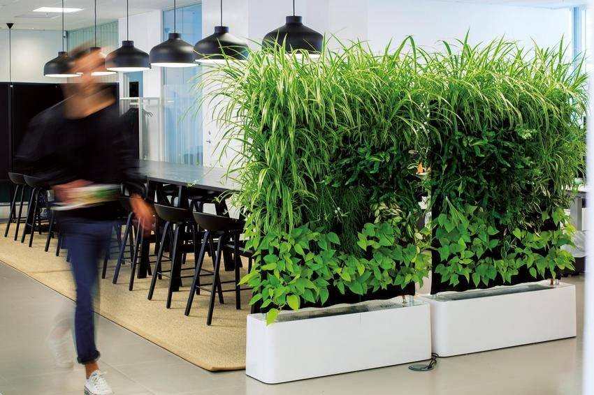 Интересно и свежо выглядит передвижная перегородка с живыми растениями