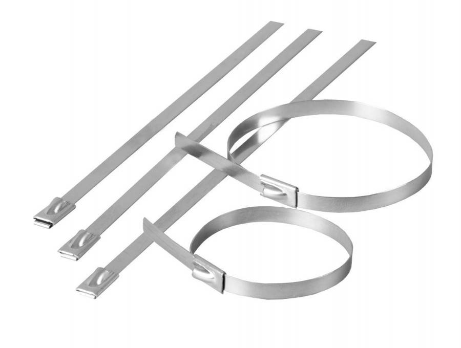 - Металлические. Создаются из нержавеющей стали, также есть модели с дополнительным ПВХ покрытием. Это самые прочные на разрыв хомуты для электропроводки. Могут работать при температурах от -80° до +500°. Негорючие, могут использоваться на улице. Недостаток – высокая стоимость.