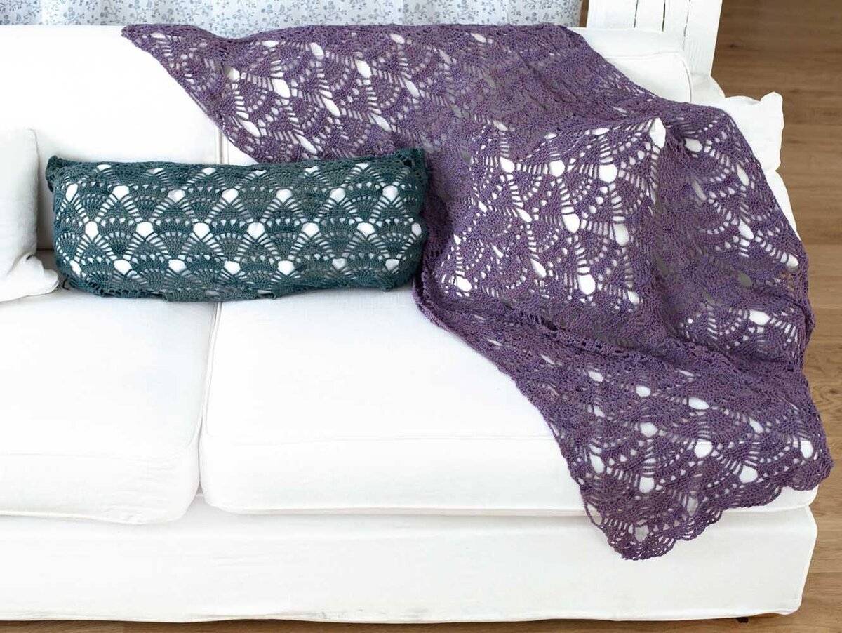 В зависимости от типа пряжи и величины спиц (крючка) плед получится крупной или мелкой вязки.