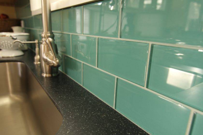 Плитка из стекла имеет такие разновидности: глянцевая, матовая, прозрачная и цветная. С помощью этой плитки кухня будет сверкать. Плитка не нуждается в особом уходе, требуется лишь иногда протирать ее с помощью специального средства.