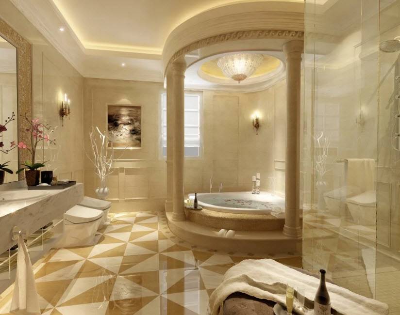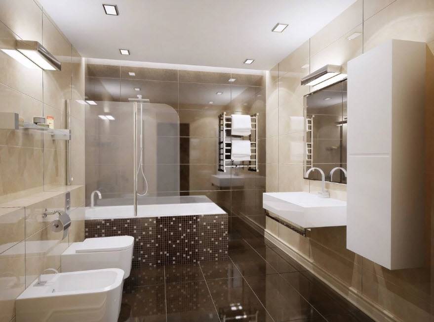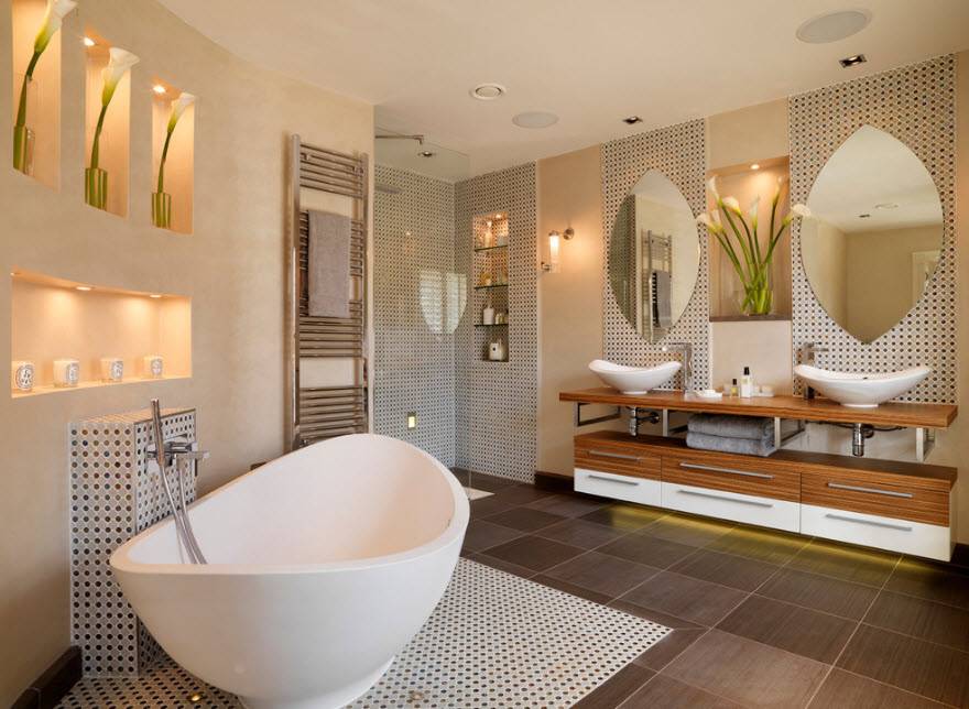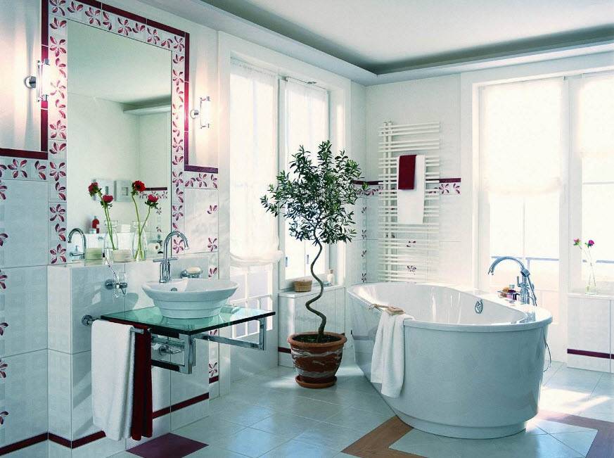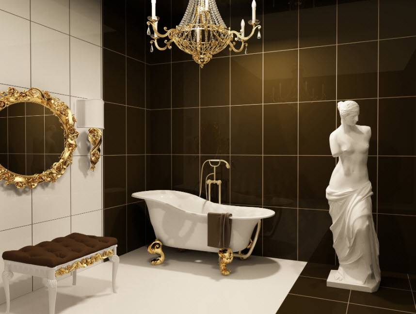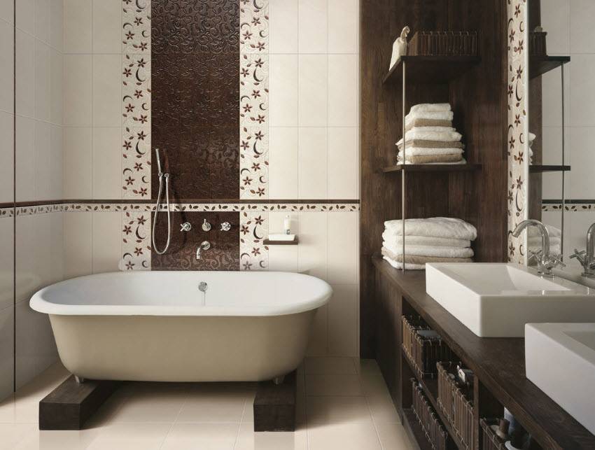 Ни для кого не секрет, что главный критерий при выборе плитки – это размеры помещения. Исходя из площади ванной комнаты, выбирается не только размер плитки, но и ее цветовая гамма. Если ванная маленькая, то и плитка должна быть соответствующих размеров, а вот в просторной комнате лучше отдать предпочтение большой квадратной или прямоугольной плитке. Что касается цветовой гаммы, то она зависит от стиля интерьера и общей концепции, что будет применена при оформлении и декорировании ванной комнаты. Мебель подбирают в тон плитке или же наоборот очень контрастной по отношению к отделочному материалу.