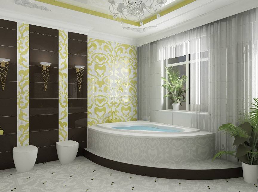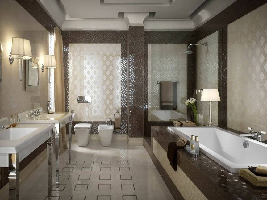Керамическая плитка-мозаика, предназначенная для ванной, характеризуется следующими плюсами: